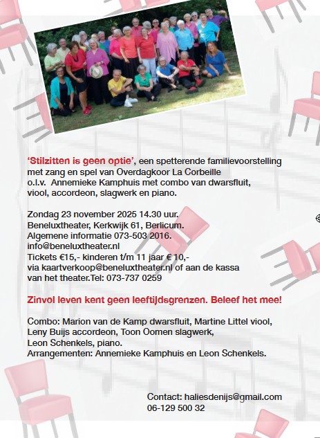 is een spetterende familievoorstelling met zang en spel van Overdagkoor La Corbeille o.l.v. Annemieke Kamphuis met combo van dwarsfluit, viool, accordeon, slagwerk en piano.